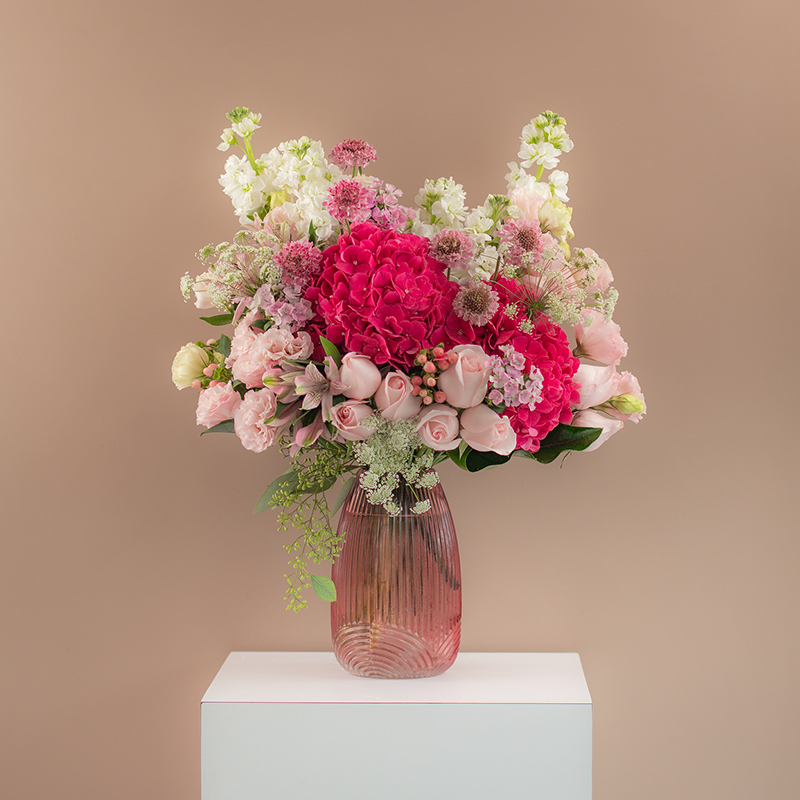 | Best Mum Ever Our exclusive garden-inspired Mother’s Day vase arrangement is filled with an abundance of gorgeous blooms such as hydrangeas, mattiolas, sweet pink roses, eustomas, and more. This extravagant gesture is the perfect gift to show mum just how wonderful she is. (2 Hydrangeas, 12 Roses, 5 Mattiolas, 6 Scabiosa, 4 Alstroemerias, 4 Eustomas, Assorted Fillers & Greens) Price : RM 320.00 |