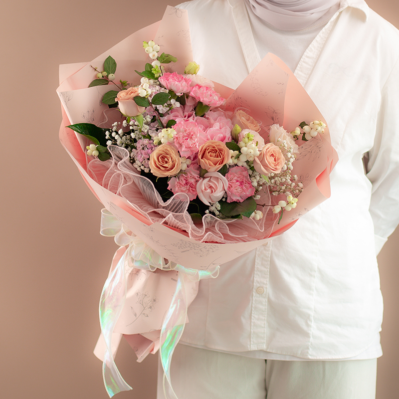 | Dear Mama Celebrate Mom’s unconditional support and care with our beautiful bouquet of delicate hues of pink, white and cappuccino coloured flowers to convey your sweetest of sentiments this Mother's Day. (5 Carnations, 1 Hydrangea, 5 Cappuccino Roses, 2 Eustomas, Assorted Fillers & Greens) Price : RM 180.00 |