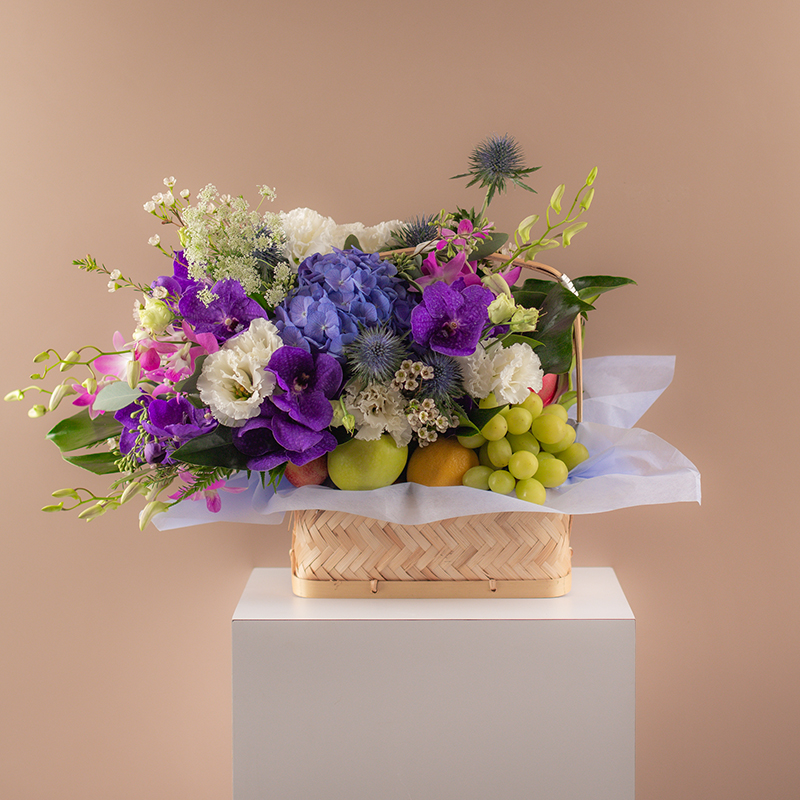 | Mother Knows Best Surprise mum with this gift basket of overwhelming healthy and delicious treats of fresh flowers such as hydrangeas, orchids, eustomas, and greens. Paired along with a selection of tasty fruits. This thoughtful arrangement will stir smiles; a beautiful gift with a healthy twist. (1 Hydrangea, 4 Eustomas,10 Assorted Orchids, Assorted Fillers & Greens, Assorted Fruits) Price : RM 180.00 |