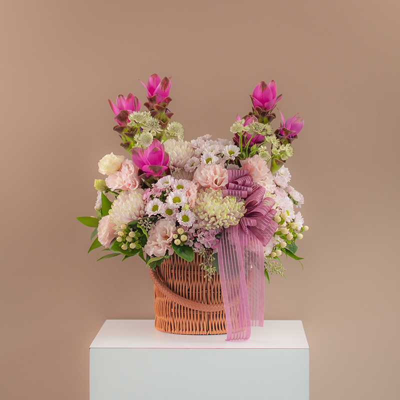 | Mum-tastic Send your love this Mother’s Day with our beautiful basket arrangement of chrysanthemums, eustomas, curcumas and assorted greens. Artfully arranged in a woven basket, it’s the perfect gift to show mum how much you care. (As Shown - 1 Size Only) Price : RM 150.00 |