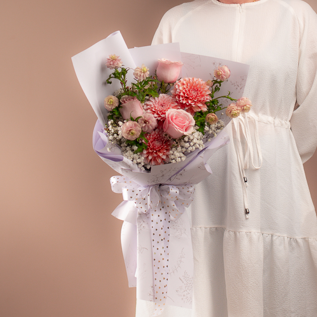 | Valentine Love Bouquet A gift means so much more when it comes from the heart. Our Valentine’s bouquet delivers on that sentiment, with assorted pink roses, dahlias, ranunculus and baby’s breath. Finished with patterned papers and ribbons, it’s a surprise that speaks volumes about how you feel. (As Shown - 1 Size Only) Price : RM 250.00 |