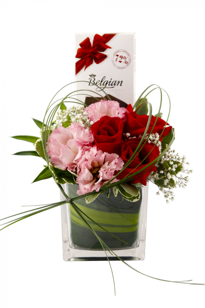 • Timeless. Radiant. Unforgettable. Our classic red roses and pink eustomas are just as special as the woman who receives them! Added to your gift to sweeten the deal, delectable chocolates as a yummy surprise!