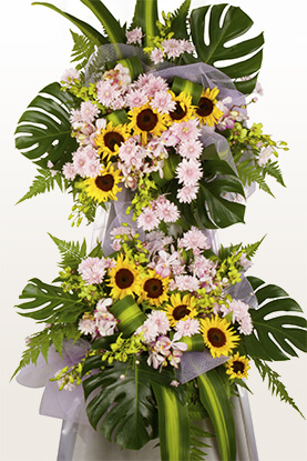 - When you want to send a sympathy arrangement that celebrates a beautiful and memorable life, this pink and yellow standing arrangement is a heartfelt choice. Beautifully crafted from an assortment of the freshest blooms, it’s a lovely expression of your care and concern during a time of sadness.