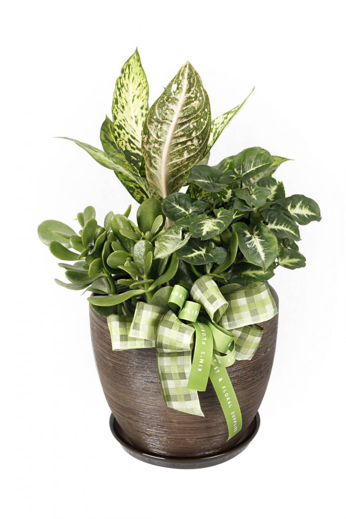 - Energize their day with this power plant arrangement of assorted greens. Artfully arranged in a ceramic pot, it’s the perfect way to make their smiles bloom overnight.