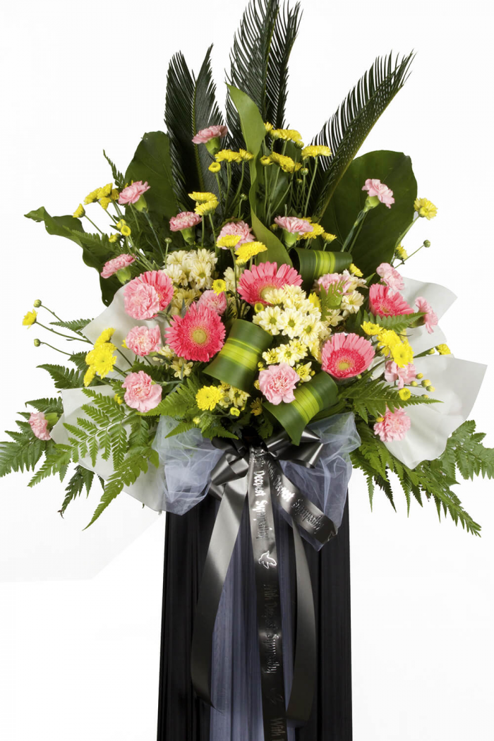 - Show that your thoughts and prayers are with them by sending this beautiful standing arrangement to the funeral home, public cremation service or to the grieving family\'s home. Crafted with pink carnations, gerberas, chrysanthemum pom-poms and assorted foliages, it is the perfect gesture of your care and concern.