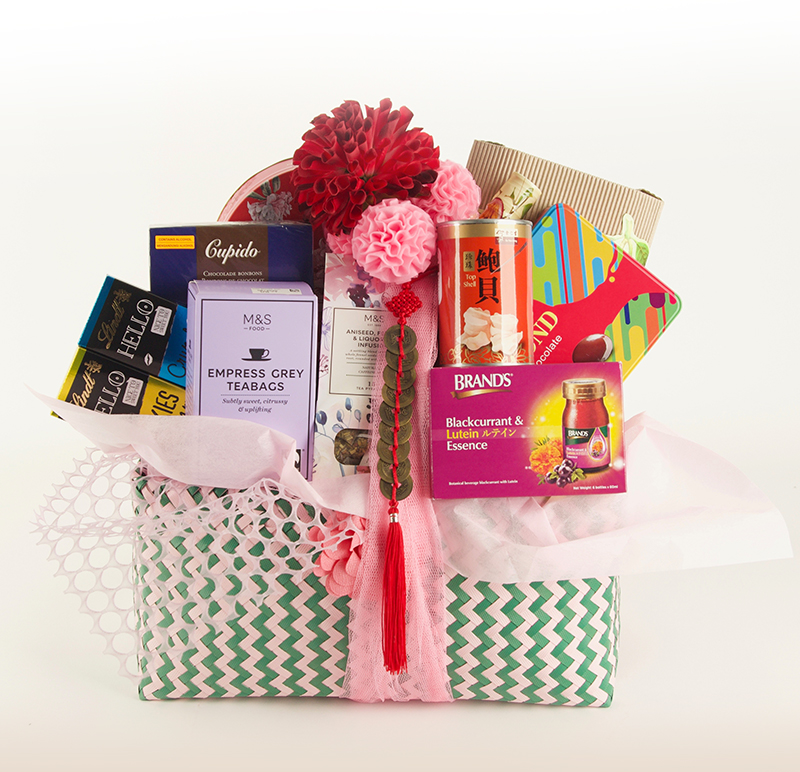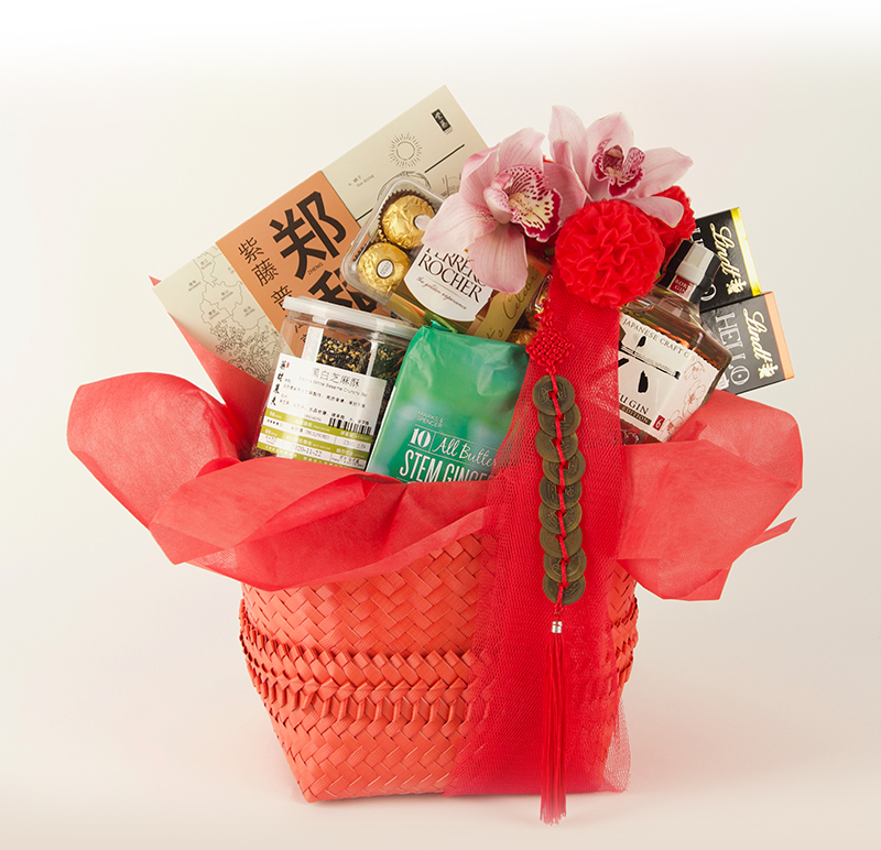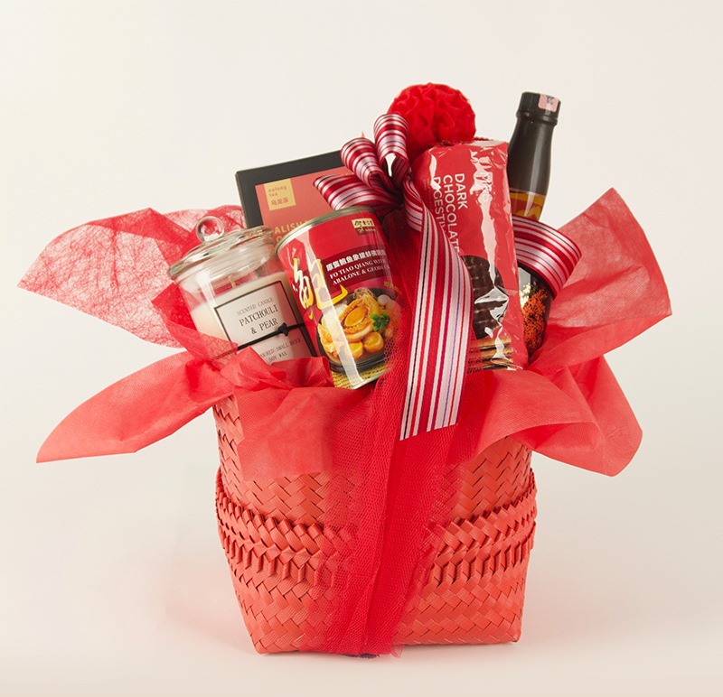 TRIBAL WOMEN SUNSHINE COVERED BASKET (S),EYS FO TIAO QIANG W/ ABALONE& GEODUCK 425GM,SCENTED CANDLE PATCHOULI & PEAR 180GM,M&S DARK CHOCOLATE DIGESTIVE HALF COATED IN SMOOTH DARK CHOCOLATE 300GM,LOACKER NAPOLITANER 175GM,AALST CHOCOLATE 100GM,SUNTORY UMESHU- PLUM LIQUEUR MATURED IN THE TOASTED CASK IN YAMAKAZI 750ML,PREMIUM ALISHAN OOLONG TEA 80GM,ARTISANAL GIFT- PACKAGING,GREETING CARD