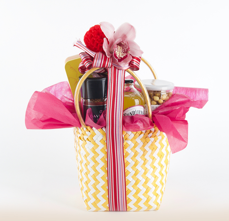 TRIBAL WOMEN YELLOW/WHITE TOTE ZIGZAG BAG (S),SEASON’S KUIH LAPIS,DAVIDOFF CAFE- GRANDE CUVEE RICH AROMA 100GM,VIETNAMESE CRUNCHY LOTUS SEED 300GM,BUNDABERG- PASSION FRUIT SPARKLING DRINK 375ML,ARTISANAL GIFT- PACKAGING,GREETING CARD