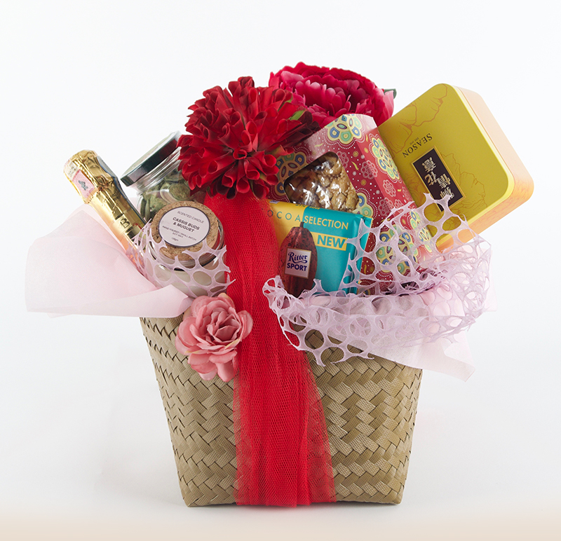 TRIBAL WOMEN SUNSHINE COVERED BASKET (S),16PCS FERRERO ROCHER 200GM,BLACK & WHITE SESAME CRUNCHY BAR 230GM,LINDT HELLO 100GM x2,THE JAPANESE CRAFT GIN- ROKU GIN SELECTED EDITION 700ML,M&S ALL BUTTER STEM GINGER COOKIES 100GM,PURPLE CANE RIPE PUER 357GM,ARTISANAL GIFT- PACKAGING,GREETING CARD