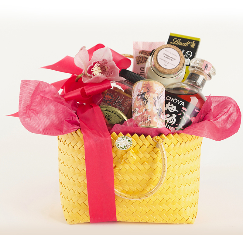TRIBAL WOMEN YELLOW TOTE BAG (S),PURPLE CANE TEA ART CENTRE JASMINE TEA 20GM,SCENTED CANDLE CASSIS BUDS & MUGUET 126GM,CAVENDISH & HARVEY RASPBERRY & PEACH DROPS 175GM,CHICKEN FLOSS ROLL 360GM,GEISHA CRISPY CHOCOLATE WAFER WITH HAZELNUT NOUGAT FILLING 41GM,LINDT HELLO 100GM,CHOYA UMESHU PRIVATE EDITION 720ML,ARTISANAL GIFT- PACKAGING,GREETING CARD