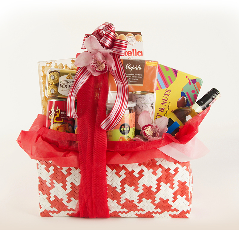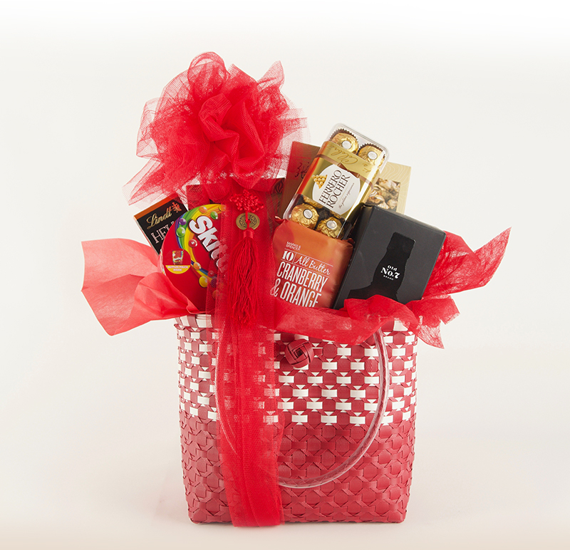 TRIBAL WOMEN RED/WHITE TOTE CRISS CROSS (M),16PCS FERRERO ROCHER 200GM,FRUITS SKITTLES 195GM,BENTONG HIGHLAND GINGERCANDY 90GM,BENTONG HIGHLAND GINGER MEE SHUA 250GM,M&S ALL BUTTER CRANBERRY & ORANGE COOKIES 225GM,LINDT HELLO 100GM,ARTISANAL GIFT- PACKAGING,GREETING CARD