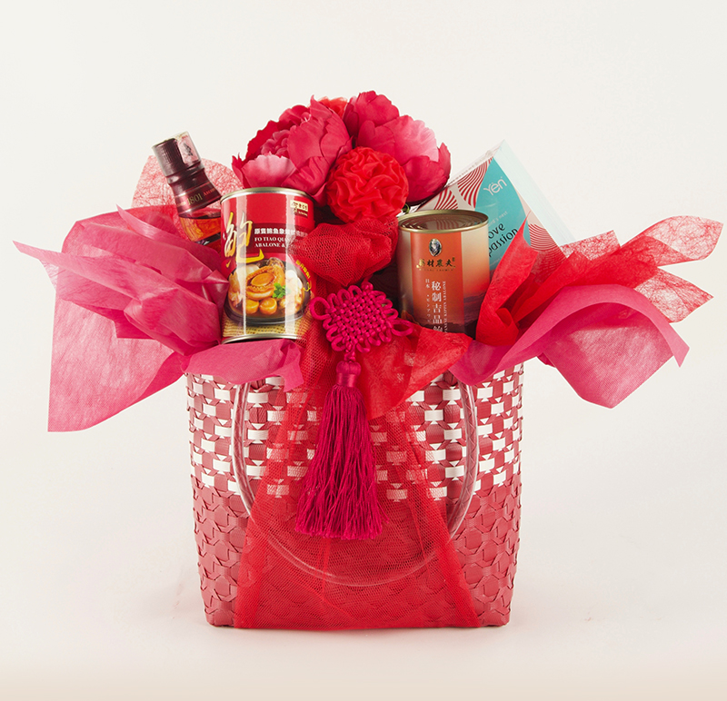ROSE GARDEN TOTE BAG,SEASON’S KUIH LAPIS CAKE,EYS FINE SELECTED FISH MAW GIFT 60GM,HF SELECTED TURKISH APRICOT 300GM,HF SELECTED AMERICAN SALTED ROASTED ALMOND 400GM,PREMIUM ALISHAN OOLONG TEA 80GM,HF CHILE SEA ASPARAGUS 425GM,HF JAPANESE KIPPIN ABALONE 425GM,EYS FO TIAO QIANG W/ ABALONE & GEODUCK 425GM,SCENTED CANDLE PATCHOULI & PEAR 180GM,DOM BENEDICTINE LIQUEUR 1L,ARTISANAL GIFT- PACKAGING,GREETING CARD