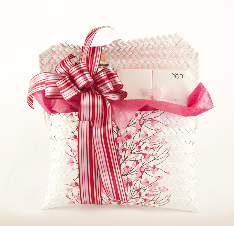 CHERRYBLOSSOM CLUTCH,EYS YEN SAKURA BIRD NEST,PREMIUM PUER TEA 150GM,SCENTED CANDLE CASSIS & MUGUET 126GM,ARTISANAL GIFT- PACKAGING,GREETING CARD
