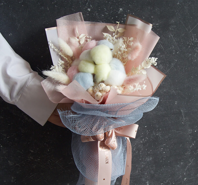 Here’s a delightful surprise we’ve dreamed up just for you. Our florists gathered cotton flower, bunny tail blooms and more creating a lovely mix of pastels. Hand-tied with textured papers, it’s the perfect gift this Valentine’s Day.